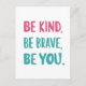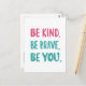 Empower your little ones with our "Be Kind, Be Brave, Be You" design, perfect for kids who embody positivity and courage. This uplifting quote is ideal for teaching children the values of kindness, bravery, and self-confidence. Whether it's for school, playdates, or family outings, this design will remind them to stay true to themselves while spreading good vibes