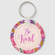Pretty and feminine key ring with pink peony border and inspirational text 'Be Kind'.