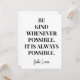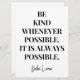 It's easy to make excuses for ourselves, but we can really, really always be kind. Sometimes we may feel tired or sad and not be up to kindness, but still...kindness is always a possibility. Be kind!