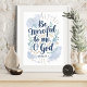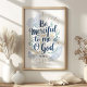 Add a touch of serenity and faith to your space with this "Be Merciful to Me, O God" wall art, inspired by Psalm 51:1. The design features elegant script surrounded by soft blue and gold foliage, perfect for creating a calming atmosphere in any room. This artwork serves as a beautiful reminder of prayer and mercy, making it an ideal piece for your home or as a thoughtful gift.
