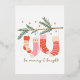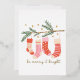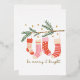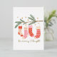 Send festive holiday cheer with this adorable seasonal Christmas card with gold foil. Card has red and pink stockings hanging on a pine tree branch with the text be merry and bright. Add your custom text on the back for a personalised touch, or delete if you prefer the note to be handwritten at a later time. Silver and rose gold foil is also available.