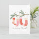Send festive holiday cheer with this adorable seasonal Christmas card. Card has red and pink stockings hanging on a pine tree branch with the text be merry and bright. Add your custom text on the back for a personalised touch, or delete if you prefer the note to be handwritten at a later time.