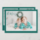 Beautiful turquoise green stripes provide a chic colour background for simple, modern holiday cards with your custom family photos. Add your own kids photographs on the front and back of this classic Christmas card.