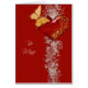 Beatuiful card with silver and gold flowers and a golden butterfly gracefully posed over a red blood heart...