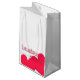 In front a cute and modern design with 2 hearts and safety pin + double script lettering with drop shadow (not customisable). But you can easily add text by clicking the customise button to personalise this valentine's gift bag. Don't forget the whole collection: