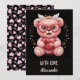 Cute Valentine’s Day greeting card featuring a pink teddy bear with heart-shaped glasses, holding a sweetheart gift. A sweet and romantic love-themed card, perfect for couples, girlfriends, and anyone who loves adorable Valentine designs. Personalized Texts.
