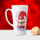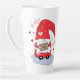 A cute latte mug with a sweet red gnome carrying a letter filled with love . Above him , it says. "Be Mine" .