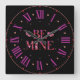 This wall clock displays the words “Be Mine” in a bold print font with Valentine hearts background letters with matching hearts in this Valentine’s Day style and theme. This clock is made for any wall and printed with a AcryliPrint®HD process measures 10.75" x 10.75" and made from grade-A acrylic. Battery operated uses one AA battery for Indoor use only, not recommended for outdoor use.