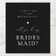 Modern minimalist, Bridesmaid proposal bottle label. Elegant typography design in white with heart accent and calligraphy graphic on black background.