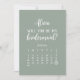 Modern bridesmaid proposal card with calendar. Beautiful sage green colour. Text will you be my bridesmaid? can be changed to text to maid of honour, matron of honour, flower girl etc.. You can give this will you be my bridesmaid card also part of bridesmaid proposal gift. Customise calendar, change fonts, font colours, background colour. Edit in design tool to move the element framing number for your date.