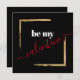 This elegant black Valentine's card has "be my valentine" in a bold white and red script across the front, framed in a gold broken brush stroke. On the reverse there is space to customise with your own special message in a white script font, or just delete if you want to stay anonymous... wink, wink...