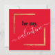 This elegant red Valentine's card has "be my valentine" in a bold black and white script across the front, framed in a gold broken brush stroke. On the reverse there is space to customise with your own special message in a white script font, or just delete if you want to stay anonymous... wink, wink...