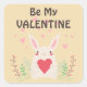 Be My Valentine Cute Bunny Heart Kids Square Sticker