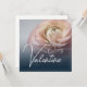 Close-up of pink rose on blue background and Valentine's greetings. The rest of the card is free to design.