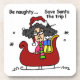 Be naughty and save Santa the trip! Funny holiday T-shirts, sweatshirts, magnets, mugs, cards, stickers, tote bags, keychains, mousepads, pillows, placemats, and other holiday humour apparel and gifts featuring Stella in Santa's sleigh.