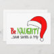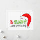 A humourous Christmas Card or Holiday Card featuring a whimsical Santa Claus hat. Features the phrase "Be Naughty ... save Santa a trip". Great for a few laughs during the Holidays!