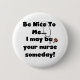 If you're a nurse you'll love this cute nurse design button that reads "Be Nice To Me...I may be your nurse someday!".
