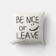 A simple and sweet throw pillow that simply reads, "Be Nice or Leave". Enough said, right?