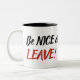 Be Nice Or Leave Fingering Pointing to leave! Funny mug people with love. Great gift for coffee lovers who want to be left alone in peace.