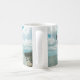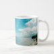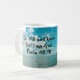 Christian mug gift with scripture, "Be still and know that I am God. Psalm 46:10". A peaceful lake with calm blue water and cloud filled sky is the image that wraps around the mug. Choose from two sizes and more colours and styles.
