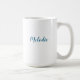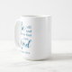 Add a name to customise my original design Christian coffee mug for a beautiful gift for the Bible believing friend. Personalise the stylish scipt mug with a name on the back. Customise this Bible scripture coffee mug with your own text if desired. "Be still and know that I am God", is a Christian Bible verse from Psalms 46:10. The trendy typography is in ocean blue. Pray and meditate on God's presence and his calm as you drink your coffee in morning quiet time. It is great Christian faith gift for the Christian mum, spiritual sister, or church bible study friend.