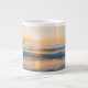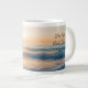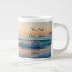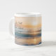 Speciality coffee mug with sunrise over the ocean and "Be Still And Know That I Am God" written on it. AI generated.