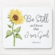 Be Still and know that I am God - Psalm 46:10 Bible Scripture with Single Sunflower Design.