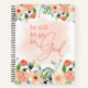 A pretty notebook or journal decorated with watercolor flowers and the saying "Be still, let go, let God".