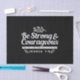 Inspirational Bible verse design featuring Joshua 1:9, 'Be Strong and Courageous, For the Lord Your God Is With You.' Perfect for Christian t-shirts, gifts, and home decor.