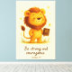 Add a touch of faith and encouragement to your home, classroom, or nursery with this charming Christian Bible verse design. Featuring the verse “Be strong and courageous.” (Joshua 1:9), this artwork shows an adorable lion holding the Holy Bible, surrounded by warm golden stars.
