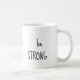 This mug has a simple but encouraging message "be strong". The background colour can be changed to any colour you'd like. You can also move the text so that it shows if the handle is on the left.