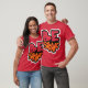 I give wanted to give this a 4 instead of a 5 because these Basic DARK T0shirts run unexpectedly SLIM or Narrow. Which is great if you do not have a potbelly, but I have a paunch. It isn't the shirt's fault that I've got a beer belly. The design and shirt itself is a quality cotton shirt. The color is more of a deep purple, but still a very pretty color. The Basic DARK T-shirts run a bit SLIMMER than the Basic Ts. The neck is a fraction narrower (or seems to be narrower) also. I'm a paunchy middle-aged woman and my neck is 12 inches (31cm) thick and the neckline fell about the same as in the photo of the man, and I had the desire to tug it a bit. So if you're a thick necked man or like loose shirts, be aware these are slimmer shirts. Once I get rid of my lockdown paunch it'll look great. The shirt washed well in cold water with no apparent bleeding. We don't have a dryer, so it hung dry. Did not shrink. Love the colors and the design. The design looks smaller on my shirt than it does on the model on-line. But still, it looks good on the shirt. The printing looks as it does on the model, just the size seems fractionally smaller. Washed garment in cold water, hung dry and design appeared unaffected.