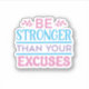 Stay motivated and inspired with this vibrant 'Be Stronger Than Your Excuses' sticker! Perfect for adding a burst of positivity to your laptop, water bottle, notebook, or gym equipment. This high-quality sticker features a colourful and eye-catching design that serves as a constant reminder to push through challenges and stay committed to your goals. Whether you're on a fitness journey, working on self-improvement, or just need a daily dose of motivation, this sticker is the perfect addition to your collection. Embrace your inner strength and let this sticker be a daily source of encouragement and empowerment.