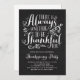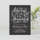 There is always something to be thankful for. Invite guests to your event with this customisable Thanksgiving invitation. It features a Thanksgiving quote in rustic calligraphy on a faux chalkboard background. Personalise by adding your details. Matching items are available.