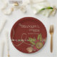 Scripture paper plates with well-known verse from Ps. 100:4, "Be thankful unto Him and bless His name." Design has several faux scrapbook effects, including ribbon, button, felt flower, leaves and twine effect. Designed by Rycky Creations; scrapbook effects by Sheila Reid, Pixelscrapper. Coordinating napkins: