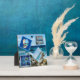 Pictured Are Aqua Blue Sea Waves Crashing Onto Big Sea Rocks With Four Photo Boxes For You To Personalize.