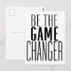 Motivational words to send with this typographical design in sans style and the quote Be The Game Changer in large black letters.