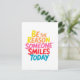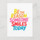 Brighten someone’s day with this cheerful and uplifting postcard featuring the inspiring phrase “Be the Reason Someone Smiles Today” in vibrant, colourful lettering. Whether you're gifting it to a friend or using it as a daily reminder to lead with kindness, this design delivers a message of encouragement, joy, and good vibes.
