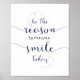 Be The Reason Someone Smiles Today motivational Poster. This is the perfect gift for yourself, for your family members and for your friends.