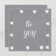 This minimalist greeting card features the inspiring phrase “Be you”, framed with soft heart details and a calm neutral tone.