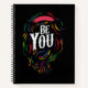 This simple yet powerful spiral notebook features the phrase "Be You" alongside a stylish line illustration of a head and flowing hair in rainbow colors. A celebration of authenticity, self-love, and LGBTQ+ pride, this design is perfect for Pride Month, equality advocates, and anyone who believes in being true to themselves.
