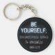 Be Yourself Classic Round Keychain- Black and Blue with heart fingerprint