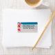 Living by the sea, tropical themed return address labels. Printed black text over a beach scene with aquamarine water and smooth sand. Bright pink Hawaiian plumeria flowers decorate the edge. Choose any size label. More lines of text can be added to this larger size.