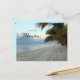 This postcard features a beach and palm trees in Mauritus. Photo credit: Flowcomm, 2010.