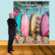 Colourful beach and surf destination backdrop with personalised text for your Wedding reception photos or corporate event. Change the text to anything you want when you order.