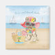 Summer Paws IV by Beth Grove. A beach-ready dog wears a sunhat, sunglasses, and flower necklace as it sits in the sand. Also includes the phrase "be a real beach babe" | SID23583A