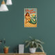 This sassy beach babe is enjoying some time out of the water and under the sun. The beautiful vintage inspired pin-up mermaid poses while seductively flicking her jewel green tail. This fantasy twist on a classic retro pinup poster will make you smile. A perfect wall art piece for your coastal home decor!
