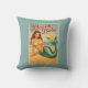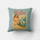 Beach Babe Pin-Up Mermaid Retro Coastal Life Blue Cushion