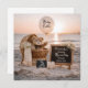 Share your happy news with a heartfelt beach baby reveal announcement design that’s as magical as the moment you are celebrating. It features a teddy nestled in a wicker basket holding a whimsical white balloon against a serene sunset ocean backdrop.