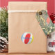 Pool party themed envelope seal sticker, with graphics of a colourful beach ball. Personalise the blue text, to read what you want.